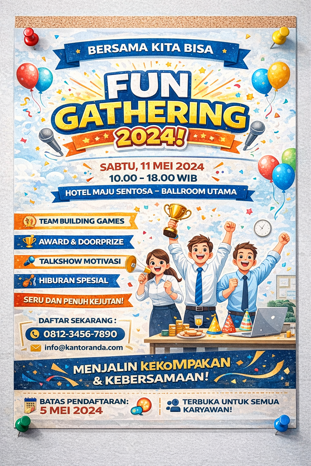 Poster Gratis Desain • Bisa Satuan & Grosir • Proses Cepat Poster Makanan Poster Promosi Poster Promosi Poster Event Ukuran A4 Ukuran A3 Gratis Desain Kualitas Tajam Pesan Sekarang